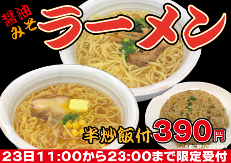 11時~23時のご注文で通常630円のセットが390円と
