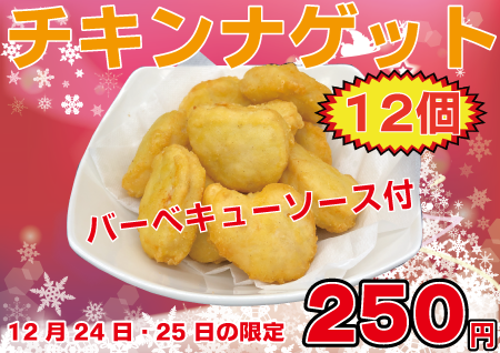 チキンナゲット12個250円で販売します。